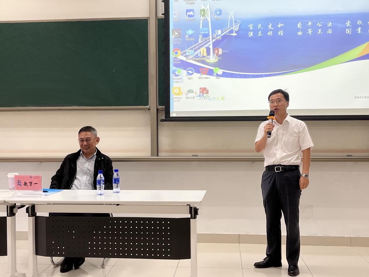 On May 14, the 52nd lecture of the BNU Zhuhai Legal Lecture Series, titled "Commercial and Judicial Functions of Company Law - Issues Concerning the Application and Judicial Interpretation Concepts of the New Company Law," was successfully held in Room C306, Lize Building, Beijing Normal University at Zhuhai. This lecture was given by Zhao Wanyi, Professor and Doctoral Supervisor from the School of Civil and Commercial Law at Southwest University of Political Science and Law. Guo Yuan, Lecturer from the Center on the Rule of Law and Development of Beijing Normal University at Zhuhai, served as the panelist. The event was presided over by Professor Yuan Zhijie, Vice Dean of the Law School of Beijing Normal University and Director of the Center on the Rule of Law and Development of Beijing Normal University at Zhuhai. Master's and doctoral students from BNU Zhuhai participated in the lecture.