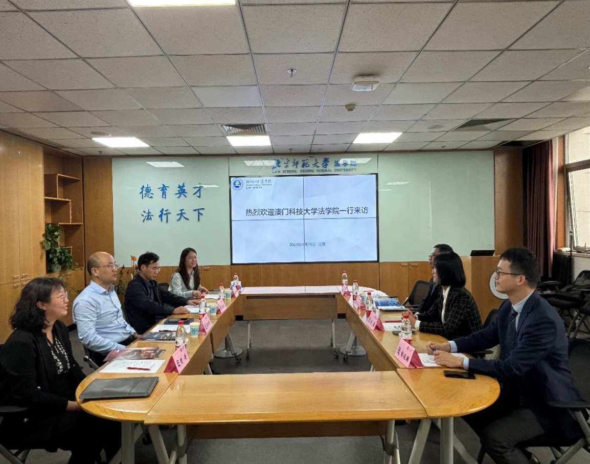 On the afternoon of September 26, Professor Fang Quan, Dean of the Faculty of Law at the Macau University of Science and Technology, led a delegation including Course Director Mu Xiaobo, Associate Professor Peng Yunpeng, and Assistant Professor Guo Yiting, to pay a visit to the Law School of Beijing Normal University. They were warmly received by Professor Liang Yingxiu, Dean of the Law School, Professor Yuan Zhijie, Vice Dean, Professor He Dan, Vice Dean, and Ms. Yu Luping, the Foreign Affairs Secretary of the Law School. During the visit, both sides engaged in thorough and fruitful discussions.