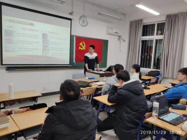 为深入贯彻落实“不忘初心、牢记使命”主题教育精神,进一步强化党员理论知识学习,2019年11月29日晚,bet365官网 2019级学硕第一党支部在教四102组织支部党员和积极分子开展了“不忘初心 牢记使命”主题教育会,支部对接教师李响老师出席本次会议,六名党员和四名积极分子参加了本次活动。