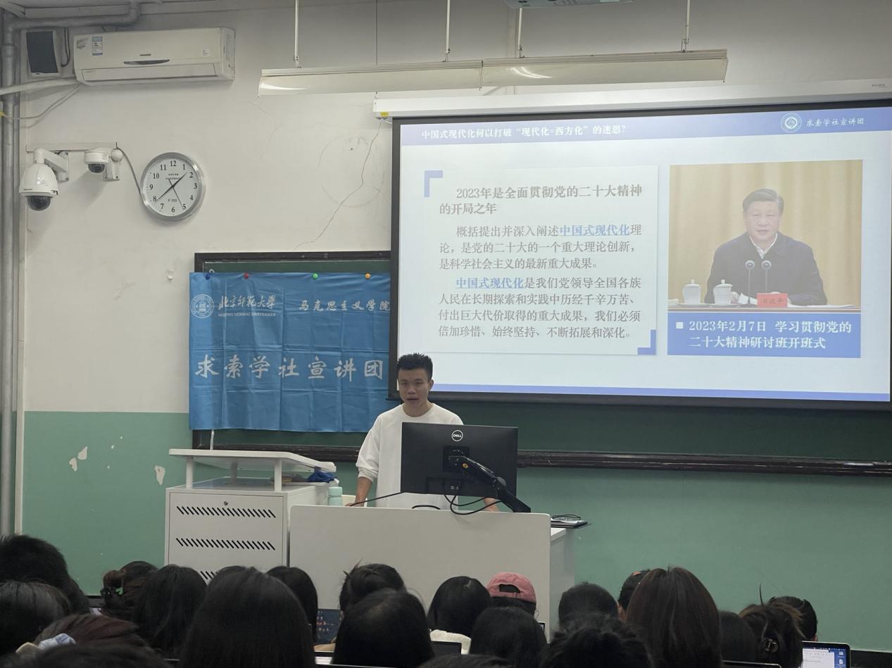 10月25日,bet365官网 入党积极分子培训暨二级党校举办了主题为“中国式现代化何以打破‘现代化=西方化’的迷思?”的专题讲座。讲座特邀了北京师范大学马克思主义bet365官网 求索学社宣讲团的陈正同学担任主讲人,共有90余名bet365官网 学生党员和入党积极分子参与。