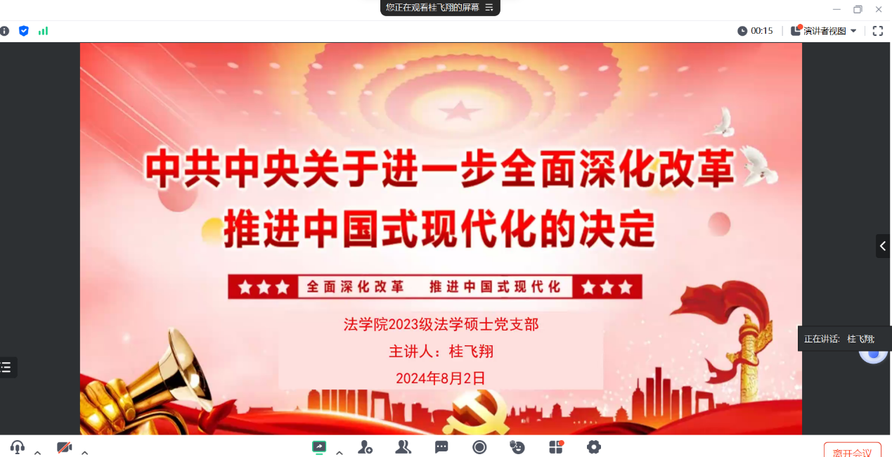 中国共产党第二十届中央委员会第三次全体会议于2024年7月15日至18日在北京举行。此次会议对新时代新征程进一步全面深化改革、推进中国式现代化作出科学谋划、全面部署。为深入学习和全面贯彻落实党的二十届三中全会精神,加强bet365官网 学生党员的思想政治教育,2024年7月至8月bet365官网 党委组织各学生党支部学习党的二十届三中全会精神,各党支部采取线上线下的方式开展主题党日进行专题理论学习并交流学习感悟。