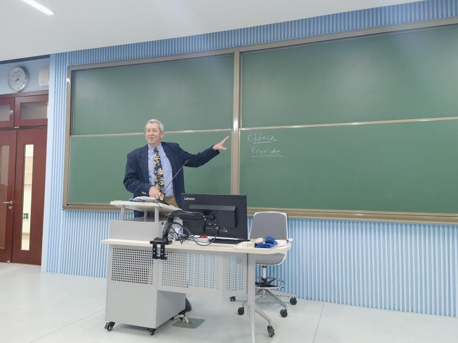 Kicking off the lecture, Professor Faure reminisced about his visit to the Law School of Beijing Normal University the previous autumn, expressing his admiration and gratitude for the academic fervor displayed by the faculty and students. He succinctly recapped the thematic expansion of his initial lecture and provided a concise overview of the advancements in EU environmental criminal law. Professor Faure highlighted that the focus of his lecture would center on two key issues: firstly, the significance of designing and safeguarding environmental public welfare through the establishment of autonomous environmental crimes; and secondly, the exploration of avenues to protect environmental public welfare via criminal law. Professor Faure underscored that not all environmental actions should be criminalized under criminal law, as legal frameworks permit pollution discharge or ecological exploitation within certain limits. He noted the substantial distinction between environmental violations and inherently harmful acts such as murder, characterizing the regulation of environmental crimes as a matter of "balance." Legislators, he argued, must strike a balance between economic interests and environmental welfare, as well as between human rights protection and environmental conservation. Environmental crimes, he explained, often rest on the premise of "breaching administrative legal obligations," a concept that holds both theoretical and practical advantages. However, this approach also gives rise to challenges in environmental regulation, such as "regulatory capture" and the "permit shield" phenomenon, and can result in inadequate criminal protection due to deficiencies in administrative law. Researchers, he urged, must delve deeper into these issues and devise appropriate responses. Furthermore, Professor Faure shared insights from his EFFACE project and the integration of his research on the crime of ecological genocide into legal frameworks, which elicited laughter and engagement from the assembled faculty and students.