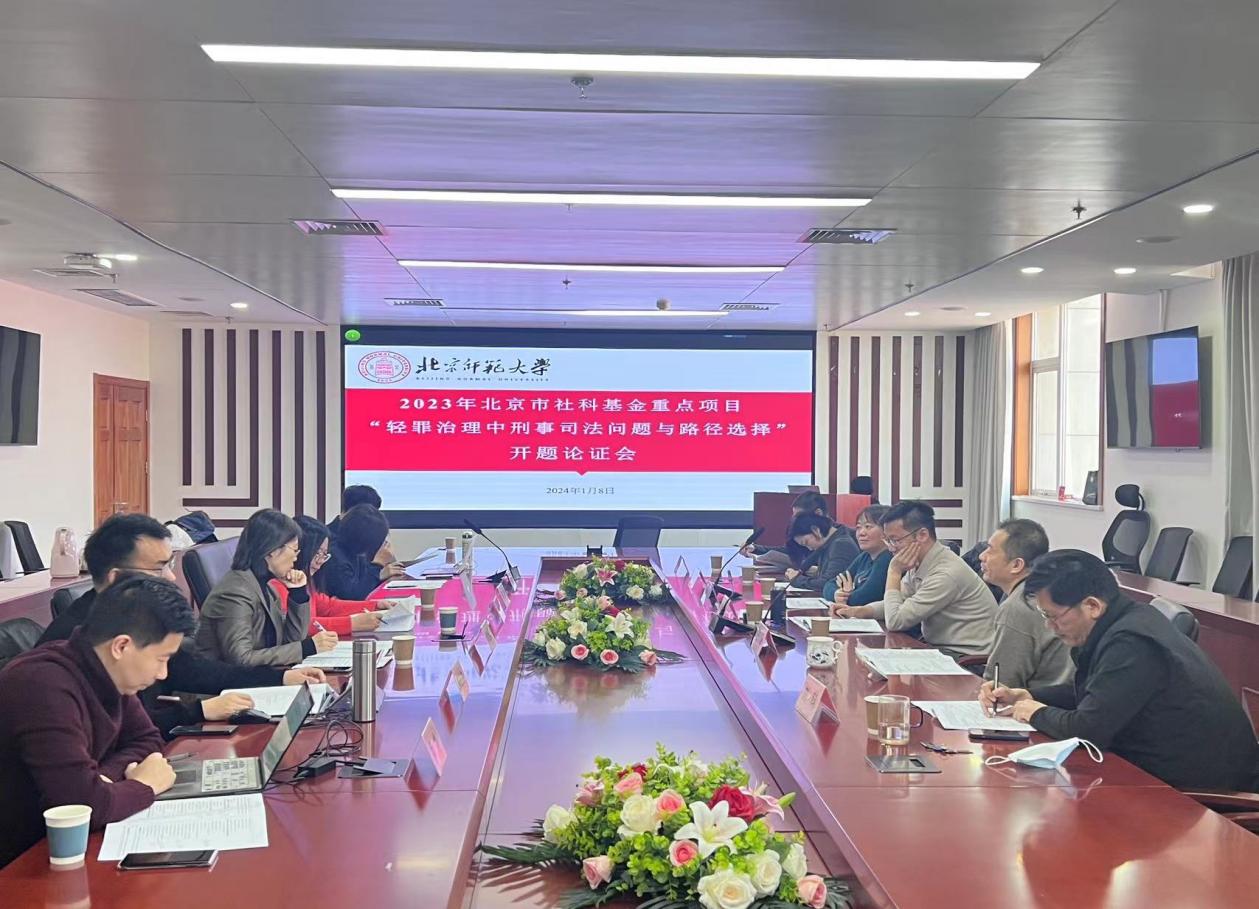 On the morning of January 8, 2024, the opening seminar of the key project "Criminal Justice Issues and Path Selection in the Governance of Minor Crimes" of Beijing Social Science Fund was held in Gao Mingxuan Lecture Hall, Room 1822, Rear Main Building. Professor Guo Zhiyuan, Vice Dean of the School of Criminal Justice of China University of Political Science and Law, Professor Wei Xiaona, School of Law of Renmin University of China, Professor He Ting, Professor Wang Chao, Professor Yuan Bin, Professor Liu Ke, Vice Dean of the Law School of Beijing Normal University, attended the seminar. Other attendees included the project leader Professor Shi Limei and the members of the project: Associate Professor Guo Lirong, Associate Professor Xiao Ping, postdoctoral candidate Xing Jinsheng, postdoctoral candidate Yang Lin, doctoral candidate Li Jinke, and postgraduate student Wu Xuyan attended the seminar. Professor He Ting, Vice Dean of the Law School of Beijing Normal University, presided over the seminar.