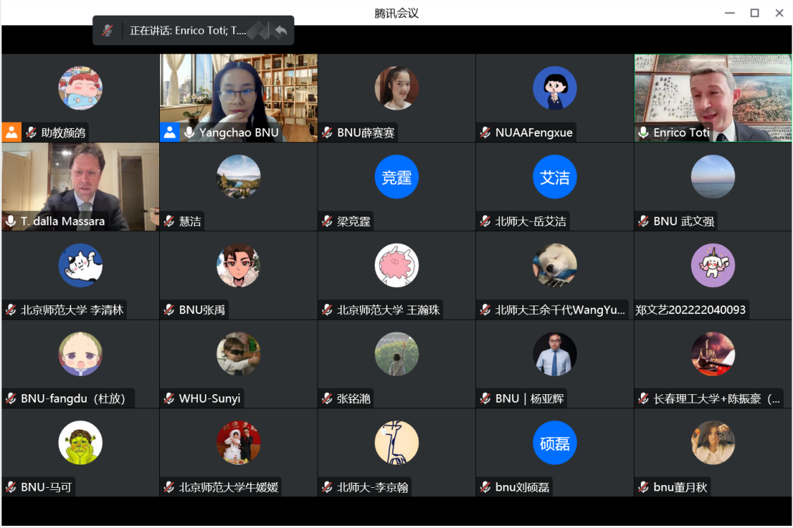 To execute a holistic, global, and unique development strategy and nurture legal professionals of the new era with international insights and a robust legal foundation, the Law School of Beijing Normal University in collaboration with the Law School of Tor Vergata University of Rome hosted a specialized English course titled "Fundamentals of European Private Law" from February 13 to March 16, 2023. The course featured five esteemed professors renowned in the domain of European private law from Tor Vergata University of Rome, University of Pisa, Sapienza University of Rome, and Tor Vergata University of Rome, who delivered nine scholarly lectures. These lectures provided a comprehensive overview of the evolution of European private law and shared the professors' pioneering academic thoughts. Over 360 students from more than 50 universities, including Beijing Normal University, Peking University, Renmin University of China, China University of Political Science and Law, University of the Chinese Academy of Social Sciences, Fudan University, Wuhan University, and Nankai University, enrolled in this enriching course.