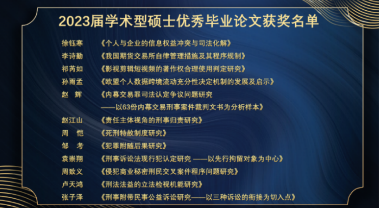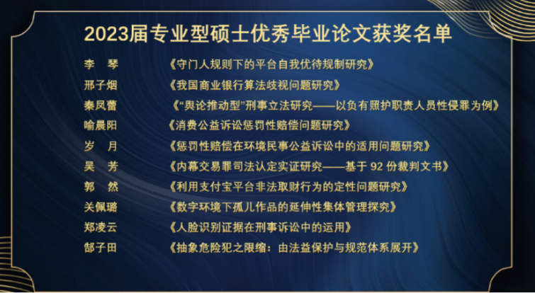 Professor Yin Jianfeng, Vice Dean of the Law School, announced the list of outstanding LL.M. and doctoral theses