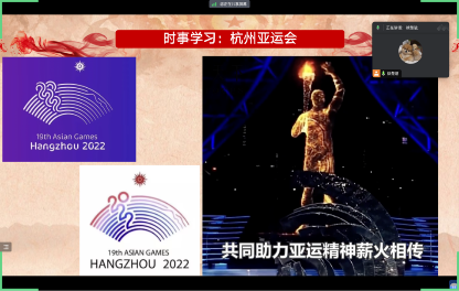 最后,为倡导大家关注时事、自主进行相关理论的学习,学生会全员一同观看了杭州亚运会幕后记录短片。短片让大家深入了解了亚运盛会背后的小故事,看到了在筹备中发光发热的党员、团员骨干力量,这也激励着大家努力学习、不断奋斗。