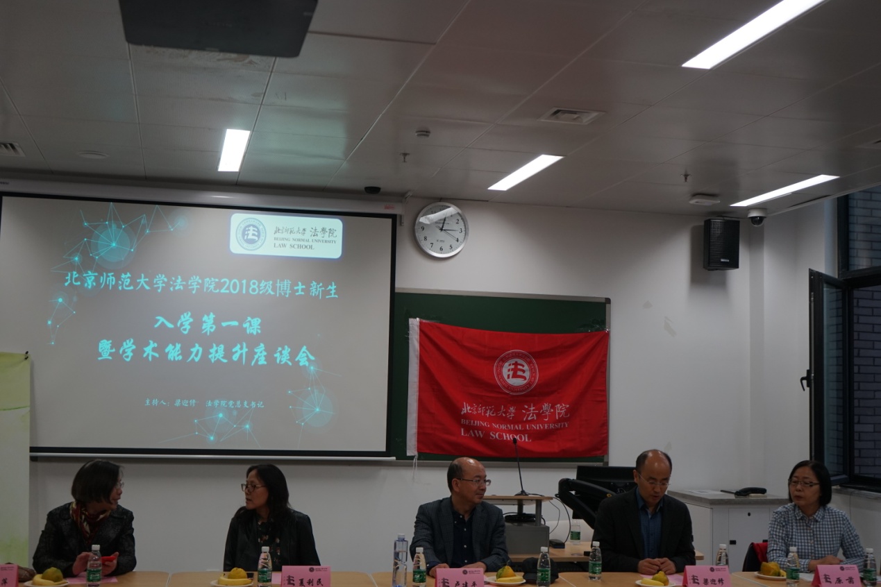 2018年10月15日下午15:00,bet365(亚洲)官方网站 在昌平校区教二楼202教室举行2018级博士新生入学第一课暨学术能力提升座谈会。bet365官网 院长卢建平教授,党总支书记梁迎修教授,副院长柴荣教授,党总支副书记原茵老师,bet365官网 教师夏利民教授、徐胜萍教授、袁达松教授,bet365官网 分团委书记徐淑琳老师,博士生教务秘书江文静老师参加此次座谈会,与2018级全体博士新生亲切交流。座谈会由梁迎修教授主持。