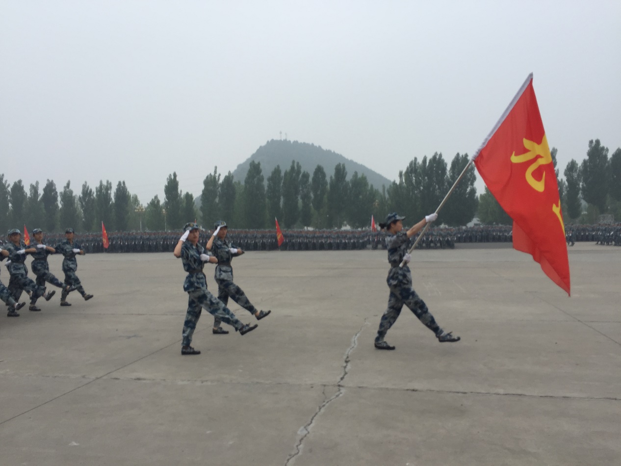 5月3日早晨,大家前往顺义军训基地。上午十时许,开训典礼隆重举行,李晓兵副书记等领导发表讲话,教官们进行了部分军事科目示范训练,赢得了热烈的掌声。