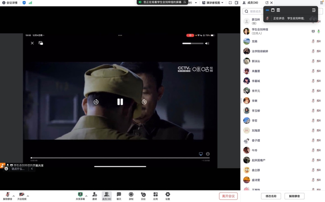 为增强同学们的宪法意识,弘扬宪法精神,加强宪法实施,全面推进依法治国、依宪治国,bet365官网 2022级学硕2班全员参加了bet365官网 学生会组织的线上“宪影之行,法律之思”观影活动,集体观看电影——《第一大案》。观影活动于4日晚7点开始,学硕二班团支部全体成员准时进入腾讯会议室线上观影。本次观看的电影《第一大案》是以新中国反腐第一大案——刘青山、张子善案侦办始末为蓝本,讲述1951年陈怀邦在反特行动中,挖出了地委书记刘青山的惊天秘密,昔日战斗英雄成为巨贪,陈怀邦并没有因旧时情谊而放弃内心所追求的正义,而是选择了忠诚于党纪国法,忠诚于人民,终将其送上了人民审判台故事的影片。