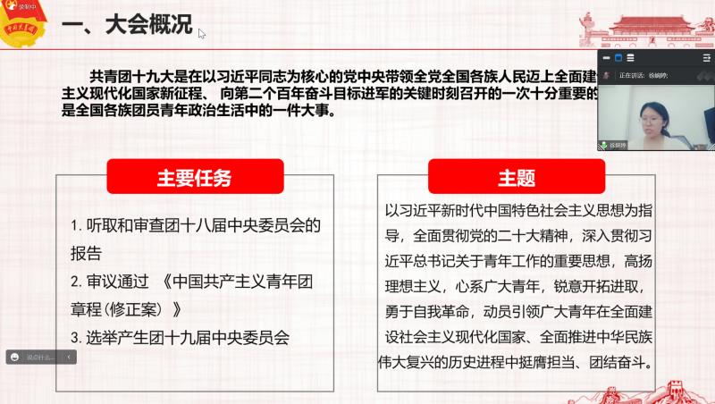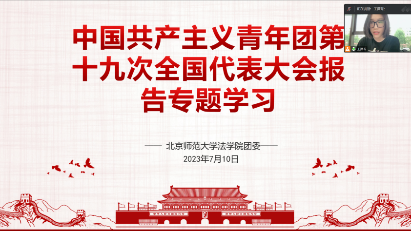 2023年6月19日上午,中国共产主义青年团第十九次全国代表大会在人民大会堂隆重开幕。中共中央总书记、国家主席、中央军委主席习近平等党和国家领导人到会祝贺,中共中央政治局常委、中央书记处书记蔡奇代表党中央致词。为积极响应团中央的号召,学习团十九大精神,bet365官网 团委于7月10日15:30通过线上会议的形式组织全体成员学习中国共产主义青年团第十九次全国代表大会报告。