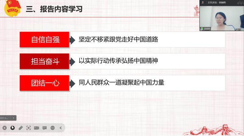 会议伊始,bet365官网 团委副书记王潇苓阐述了开展本次专题学习会的目的和重要性,鼓励全体成员认真学习相关会议内容。