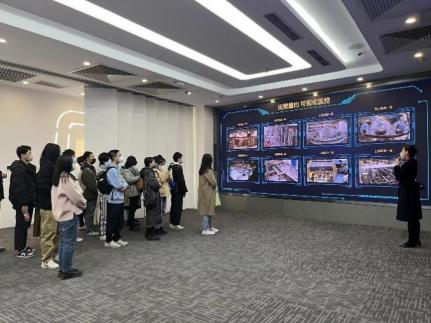 师生代表跟随讲解员陆续参观了京东集团各主要业务部门的展区。具体包括目前京东集团的线下人工服务与智能快递柜相结合的物流自提点、京东之家、京东物流、京东保险、京东总部建设模型和目前尚在建设当中的京东总部第三期等板块。京东大厦内部拥有京东完整的自有营业部,可以完成全流程服务,体现了京东一直以来坚持完成“最后一公里配送”的服务理念。