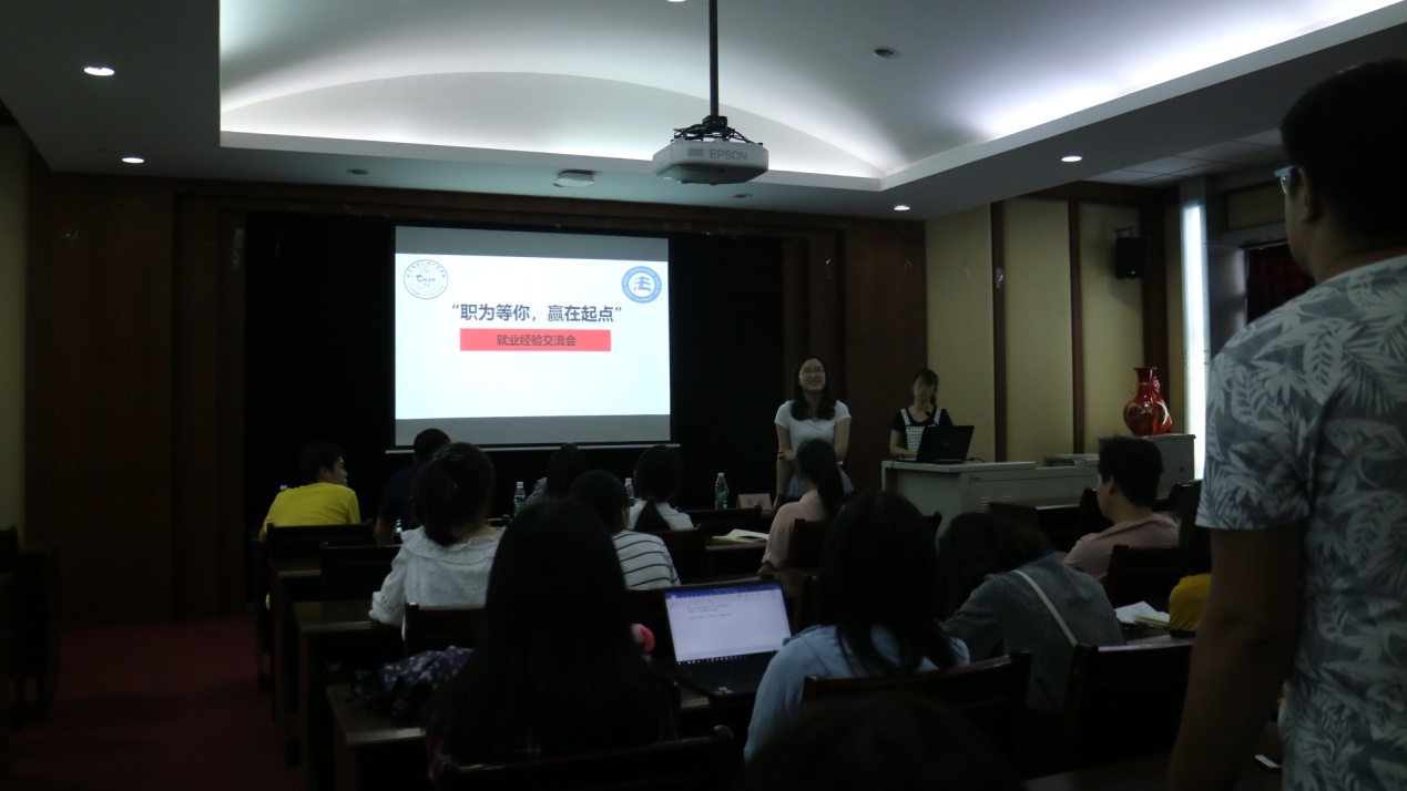 首先,孙敏、刘绮思两位师姐结合自身求职经历,为同学们分享简历制作、求职礼仪、面试技巧等方面的经验,并耐心解答同学们的提问。