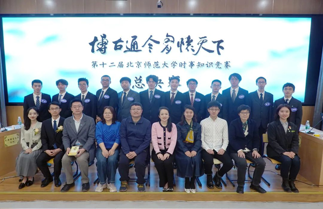 4月23日晚,第十三届“博古通今 胸怀天下”北京师范大学时事知识竞赛在教九楼502教室成功举办。bet365官网 党委副书记郭雅婷老师出席本次比赛。本届赛事历时近一个月,共有来自18个学部院系的31支代表队参加,经过初赛选拔,bet365官网 、社会发展与公共政策bet365官网 、文bet365官网 、历史bet365官网 四支队伍晋级决赛。总决赛以年度时事知识盘点为主线,包括世界之旅、人物今昔、人物荟萃、人物探微、今日亚洲等环节,通过必答题、抢答题、互选题等多种比赛形式,全方位考察选手的时事知识水平。我院宋锦(2020级卓越实验班),卫垣辰(2021级卓越实验班),姚煊林(2022级卓越一班)组成的bet365官网 代表队沉着冷静、配合默契,在比赛伊始便确立巨大领先优势并最终锁定胜局,获得冠军,卫垣辰同学获得“最佳风采奖”。这也是bet365官网 代表队第四次夺得赛事冠军。