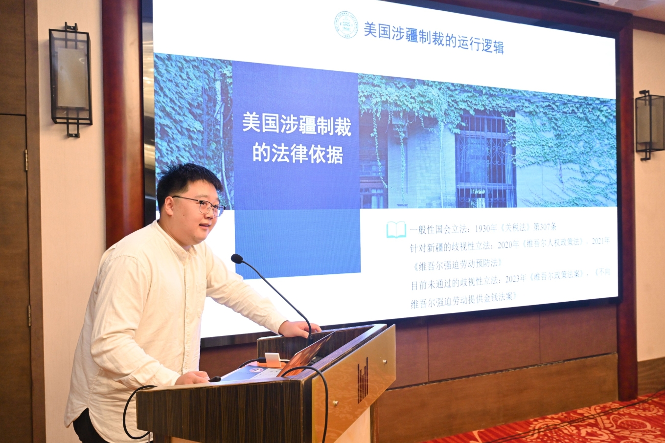 我院博士研究生徐振毅参加本次年会,并在论坛六“单边制裁与出口管制的法律问题”中以“美国涉疆制裁的违法性分析”为题进行了发言汇报。汇报从美国涉疆制裁的运行逻辑出发,分析了美国涉疆制裁对国家管辖权规则的滥用,进而论证其制裁措施所违反的世界贸易组织成员方义务以及《关税与贸易总协定》第二十条所规定的公共道德例外条款能否正当化其制裁行为。