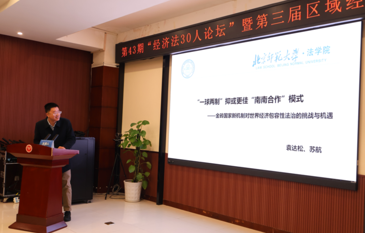 我院袁达松教授和苏航博士生合作撰写论文《“一球两制”抑或更佳“南南合作”模式——金砖国家新机制对世界经济包容性法治的挑战与机遇》并被邀请作主题发言。世界经济包容性法治即能够实现世界经济包容性发展的世界经济法律制度。“一球两制”理论在国际经济治理阵营化的“割裂”的现实面前陷入堪忧前景和法理困境,难以应对世界经济包容性发展的新挑战。“大金砖合作”是“南南合作”的重要平台,在新兴经济体群体性崛起的背景下成为推动国际经济治理体系包容化、法治化重塑的重要机遇。“全球南方”治理规则具有多元化、包容化、法治化特征,体现为多边主义、包容性发展理念和法治理念的良性互动,成为全球治理体系变革的关键因素和重要趋势。我国应以人类命运共同体理念推动金砖合作新机制的法治共识形成,促使“南南合作”模式的“软法—硬法”实现,以“大金砖合作”为契机推动世界经济法的构建,从而以更佳“南南合作”模式推动世界经济包容性法治。
