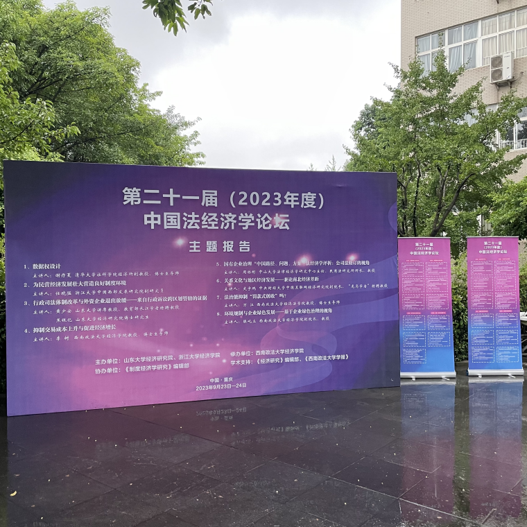 “第二十一届中国法经济学论坛(2023年度)”于9月22日至24日在西南政法大学举行。本届论坛由山东大学经济研究院和浙江大学经济bet365官网 共同主办,西南政法大学经济bet365官网 承办,《制度经济学研究》编辑部协办,《经济研究》编辑部、《西南政法大学学报》作为学术支持。来自清华大学、浙江大学、中山大学、中国人民大学、南开大学、上海交通大学、重庆大学、中国政法大学、西南政法大学等全国高校、科研院所及法院、检察院和律师事务所等实务部门的100多名专家学者参加论坛。