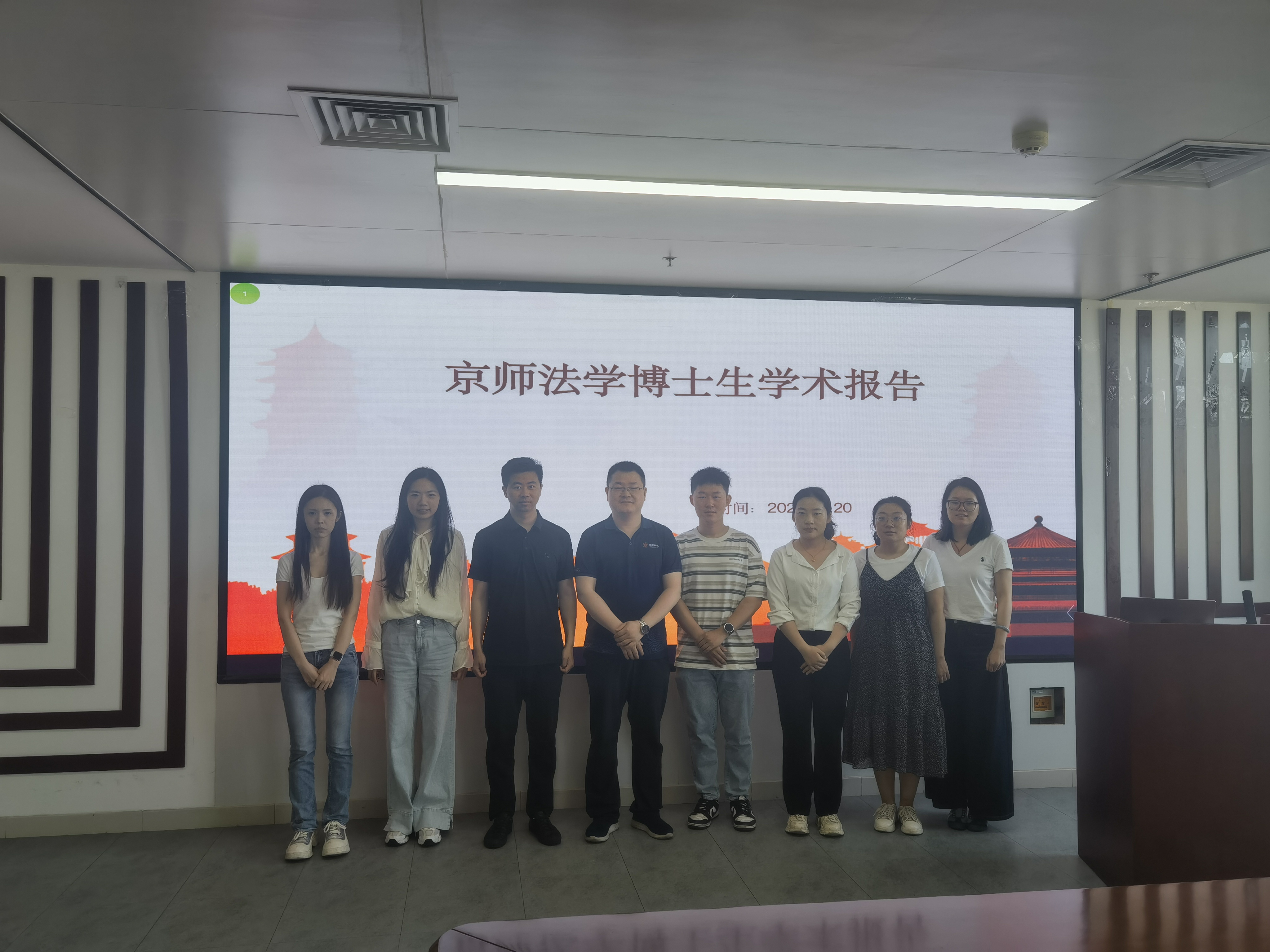 2025年6月20日下午,“法理求真:青年法学博士生学术交流沙龙”博士生学术报告在北京师范大学海淀校区后主楼顺利举行。本次报告由bet365官网 博士研究生杨灵丽主持,共有2023级博士研究生张智睿、李钟文、强佳杉、杨灵丽、杨丰帆和杨彤彤六位同学做主题报告。报告邀请了bet365官网 商浩文副教授和杨林老师担任点评专家,同时邀请了骆艳瑶、张印两名博士研究生担任与谈人。每位报告人报告时间为20分钟,报告结束后依次进行了与谈和点评环节。为确保讨论质量,两位点评教师和各位与谈人会前均认真研读了相关论文,并结合现场报告提出了细致的点评与修改意见。