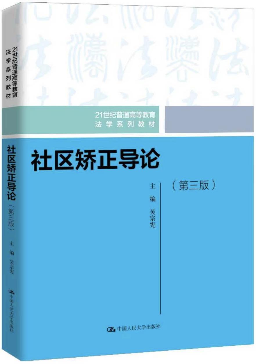 bet365(亚洲)官方网站 暨刑事法律科学研究院二级教授、博士生导师、犯罪与矫正研究所所长吴宗宪主编的《社区矫正导论》(第三版)一书近期由中国人民大学出版社出版。本书是“21世纪普通高等教育法学系列教材”中的一种,16开本,全书四编16章460页,69.8万字,正文之后有“主要参考文献”。ISBN:978-7-300-34347-1。