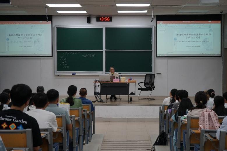 讲座伊始,武谦老师隆重介绍主讲人梁慧星教授,并对梁慧星教授的到来表示热烈的欢迎。梁慧星教授以“学位论文写作”为主题,重点围绕文体、研究方法、写作步骤和论文选题难四部分展开讲述。