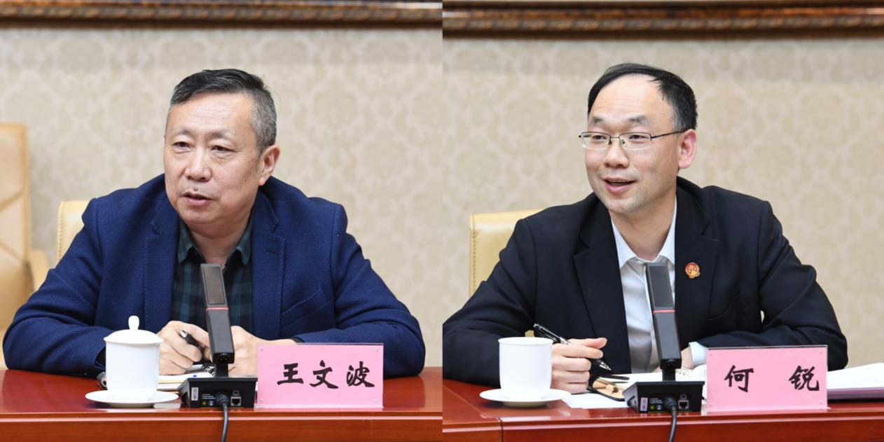 一中院教培处处长王文波、研究室主任何锐分别围绕合作方向、资源支持、人才培养、专业赋能、实践实习及业务培训等方面进行发言。