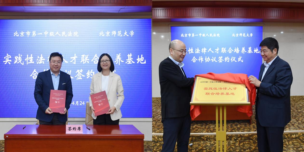 在签约揭牌仪式上,阴建峰、娄宇红代表双方签署合作协议。梁迎修、马强为“北京市第一中级人民法院bet365(亚洲)官方网站 实践性法律人才联合培养基地”揭牌。