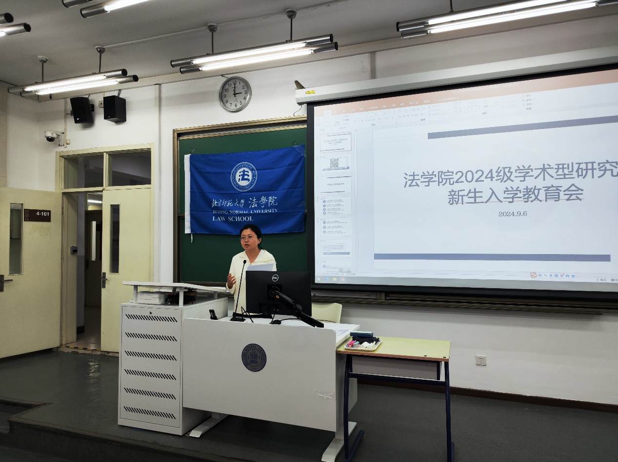 下午2点会议准时开始。贺丹代表bet365官网 向全体2024级硕博新生表示热烈欢迎,并为同学们介绍了北师大法学学科的发展历程以及近年来bet365官网 在学科建设、师资团队、人才培养等方面的丰硕成果。她寄语全体新生要珍惜bet365官网 的丰富学术资源。
