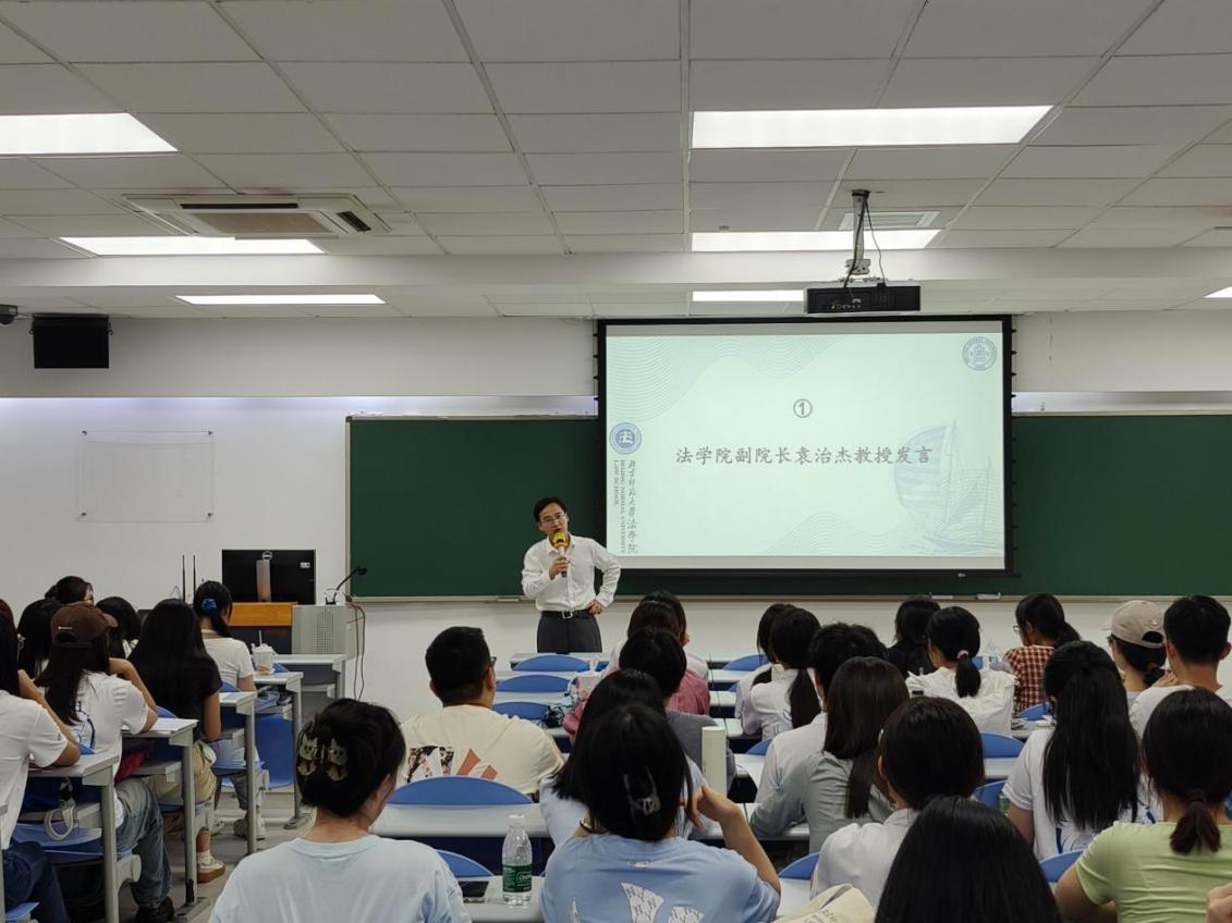 副院长、珠海校区法治发展研究中心主任袁治杰教授主讲,教务秘书杨卓颖老师主持,珠海校区全体2024级法律硕士新生积极参与了此次会议。